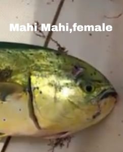 پہلے اسے ڈولفن کہا جاتا تھا لیکن بعد میں امریکی ریاست ہوائی نے اسے ماہی ماہی کا نام دیا تاکہ لوگ ماہی ماہی اور ڈولفن مچھلی میں کنفیوژ نہ ہوں۔ ہوائی میں ماہی ماہی کا مطلب ’بہت مضبوط‘ کے ہیں۔ ہوائی میں جب کسی لفظ پر زور دیا جاتا ہے تو وہ اسے دو بار پکارتے ہیں، اس لیے اسے ایک بار ماہی کی بجائے دو بار ماہی ماہی کہا گیا ہے، کیوں کہ یہ پچاس سے ساٹھ میل فی گھنٹہ کی رفتار سے تیر سکتی ہے اور پکڑے جانے پر بہت زیادہ اچھل کھود کرتی ہے، اس وجہ سے یہ نام دے دیا گیا ہے یعنی بہت مضبوط۔ جب کہ ہسپانوی میں ڈوراڈو کا مطلب ’سنہرا‘ کے ہیں، یہ نام اسے اس کے سنہرے پیٹ کی وجہ سے دیا گیا ہے۔